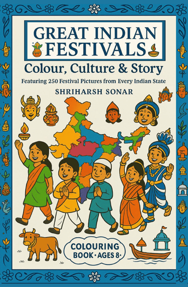 This book takes young readers on a gentle, joyful journey across India’s living heritage, covering 250+ festivals celebrated across all 28 States and 8 Union Territories—from the high mountains of Ladakh to the coastal rhythms of Kerala, from tribal traditions to grand city celebrations. Every page represents a festival that people actually live, celebrate, and pass on—carefully chosen with no repetition, so that each turn of the page feels like discovering a new part of the country.