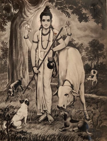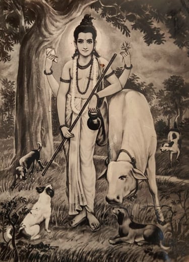 What makes this painting remarkable is not merely its devotional subject, but the artistic intelligence behind its composition. Long before digital tools or visual manipulation existed, Dasharath Sonar conceived and painted a composition that subtly blends iconographic elements of Shiva within the form of Panduranga. Through visual storytelling, he captures the very confusion, revelation, and spiritual unity experienced by Narahari.