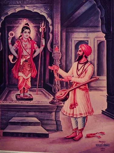 This artwork draws from the devotional legend of Narahari Sonar, a goldsmith-saint of Pandharpur and an ardent devotee of Lord Shiva. According to tradition, Narahari was once asked to craft a golden waist ornament for Lord Panduranga. Reluctant to work for a deity he believed was different from his chosen Lord, he agreed only on the condition that he would measure the idol while blindfolded.