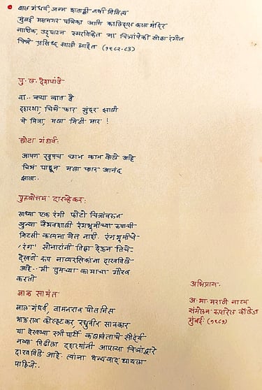 A rare curated collection documenting the contribution of early Marathi theatre artists — including performers from the Bal Gandharva era and pioneers of stage performance during a formative period in Indian theatre history.