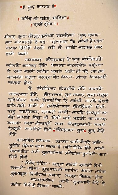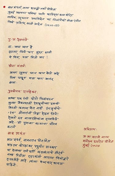 This section preserves and presents the unpublished and historically significant literary and theatrical work of Dasharath Sonar — including original plays, stories, poems, and curated theatre-history material.
