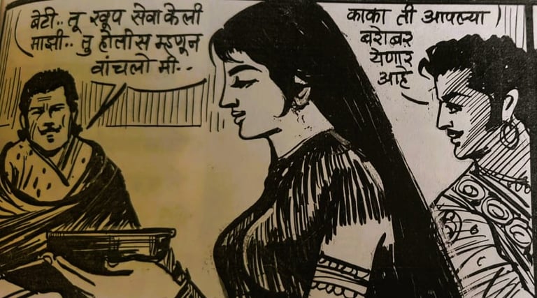 पन माला ठाव व्हतं! रांड म्हंजी कोन ती. सुगंदाबाईची आण माझ्या दादाची लै दोसती व्हती. सबावाण मायाळू व्हती. दिसाया तर आशी, का जशी शिनीमातली नटी. ती माज लै लाड करायची. खाऊला पैसं द्यायची. माला
